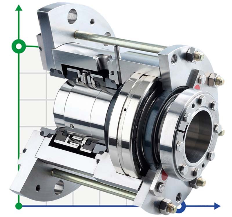 The double cartridge seal R-M481KL-D is designed for top-driven stirrers and reactors. It is shaft-independent, unbalanced and has an integrated floating bearing. It can operate with buffer fluid at a pressure of up to 0.6 MPa as a single seal or under barrier fluid pressure as a double seal, up to 1.6 MPa. Sliding speed up to 5 m/s, operating temperature: -40+200 °C.